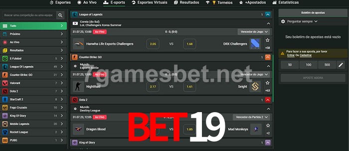 O bet19 oferece uma grande seleção de opções de apostas em e-sports com probabilidades competitivas